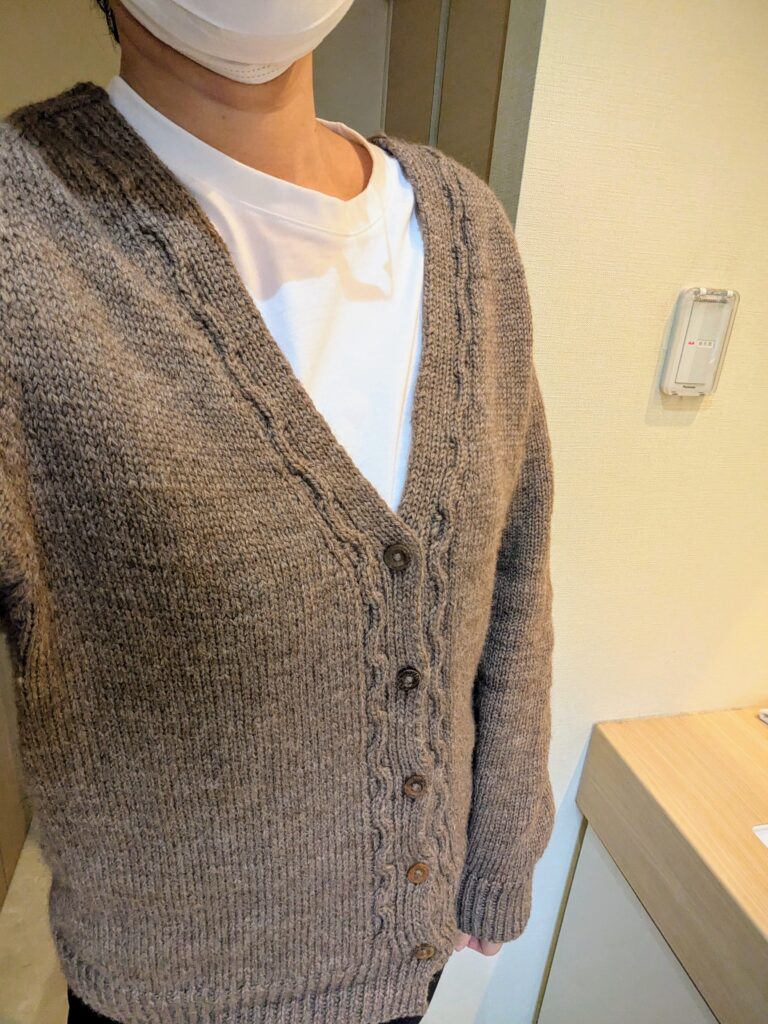そんなこんなでようやくVネックカーディガンが完成しました。